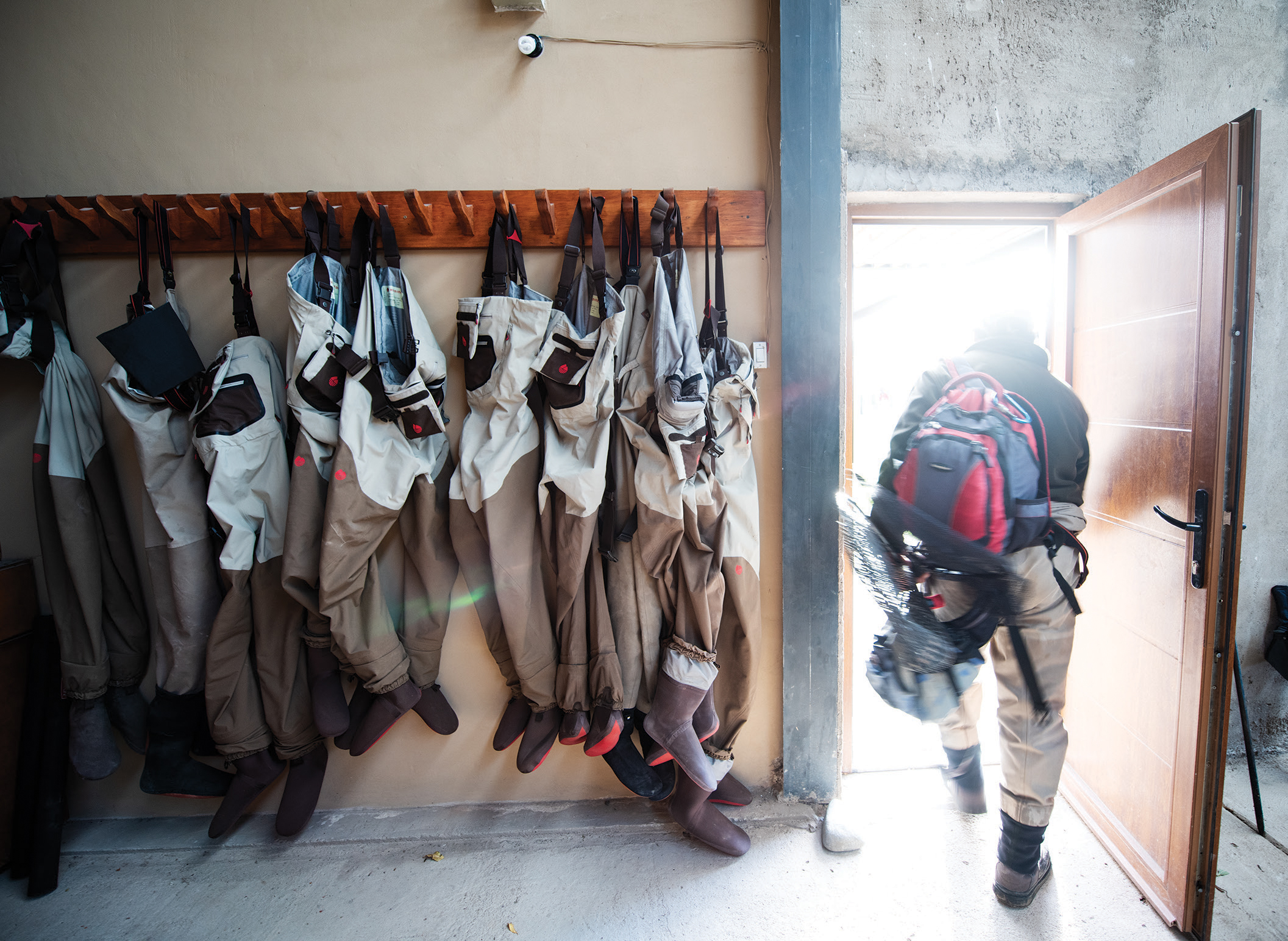 - Fabian Gastaldi heads out for the day from the guide room at the Limay River Lodge in Argentina.