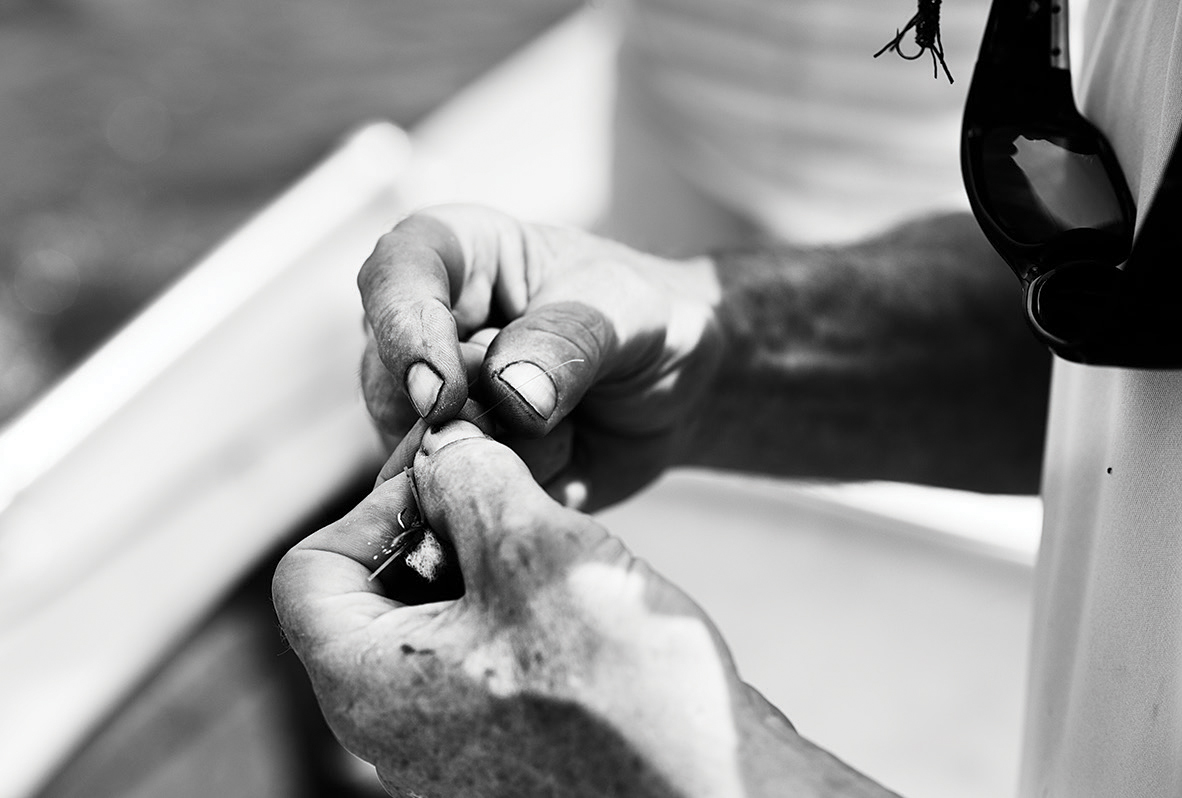 - Guide Dan Lahren readies a hopper-dropper rig on the Yellowstone River.