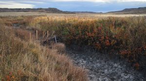 “That’s one of about 75 BDAs on my place and, if they work, in a couple of years, you won’t be able to stand here,” says Fox, pointing to a tangle of woody brush in an inside bend of the prairie creek. The idea is that over time, the stream will widen and create boot-sucking bogs in an otherwise parched landscape.