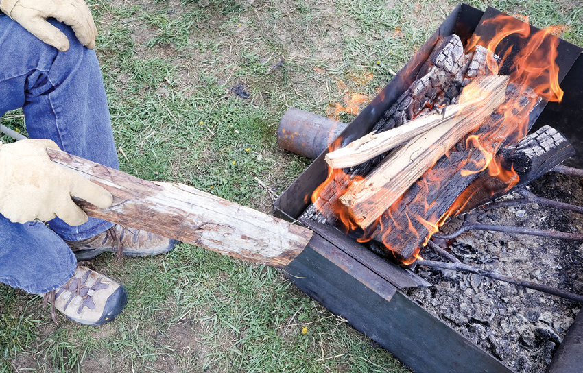 - Jonathan Foote, a Montana-based architect and cowboy, mans the fire and evenly heats the four branding irons by piling wood in uniform stacks over each one.