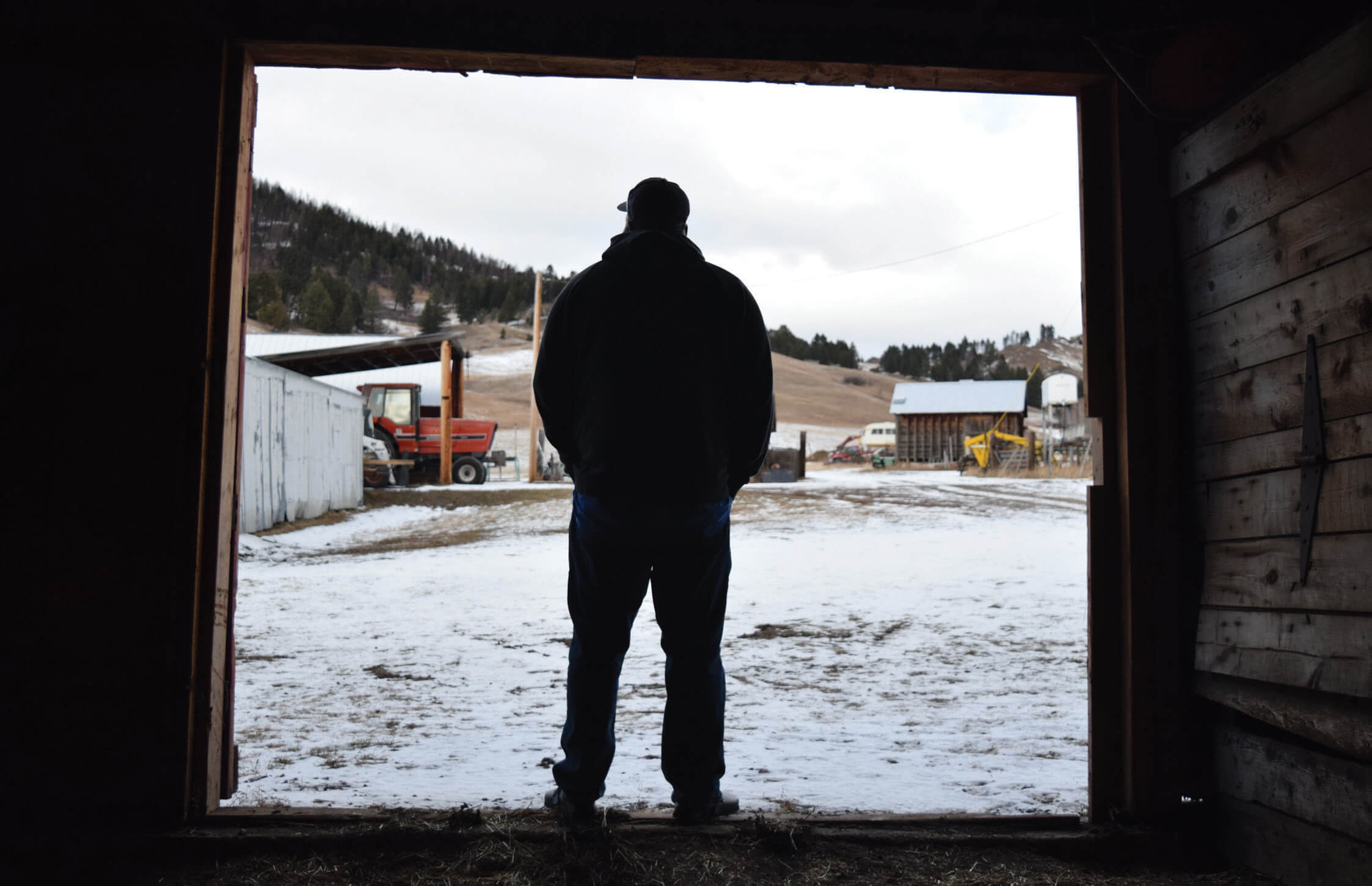 Papke surveys his farm in Bridger Canyon, where his family homesteaded generations ago in the late 1800s. He still calls the farm home today.