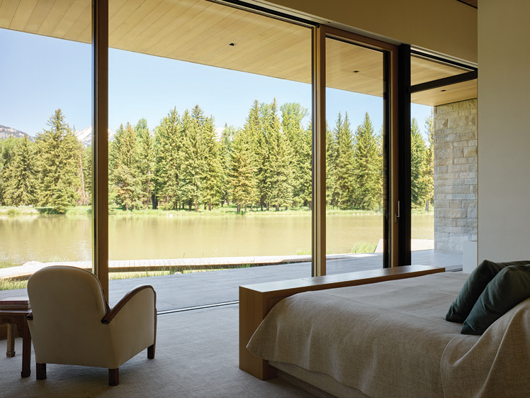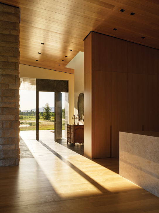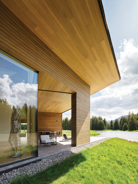 ONE OF THE MASTERS OF WILDLIFE ART IN THE U.S. once suggested that Northwest Wyoming is an area of angles born of elevation, aridity, and the sun’s illumination. So it was an elegant accomplishment when the combined genius of architects, builders, landscape designers, and homeowners created a structure in the same region with an essence that’s shaped by water.