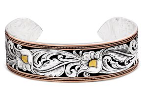 Leather Cut Tri-Colored Floral Cuff Bracelet by Montana Silversmiths