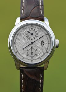 Dave Berghold of Bozeman, Montana’s The Last Wind-Up recently released an exclusive timepiece in celebration of his 35 years in business. The Model 3 is inspired by the precision of observatory and master clocks and remains true to its regulator-watch legacy as a reference timekeeper. Unlike original watches, the hour and second hands are positioned in separate subdials while the minute hand remains centrally located, allowing for legibility and precise readings. The movement is achieved through a top-grade Swiss Sellita SW266-1 encased with blued-steel screws and housing 31 jewels and a 41-hour power reserve. It includes an intricately engraved silver Guilloche dial, is crowned with a Yogo sapphire from the Little Belt Mountains of Montana, and is finished with a caiman crocodile leather strap.