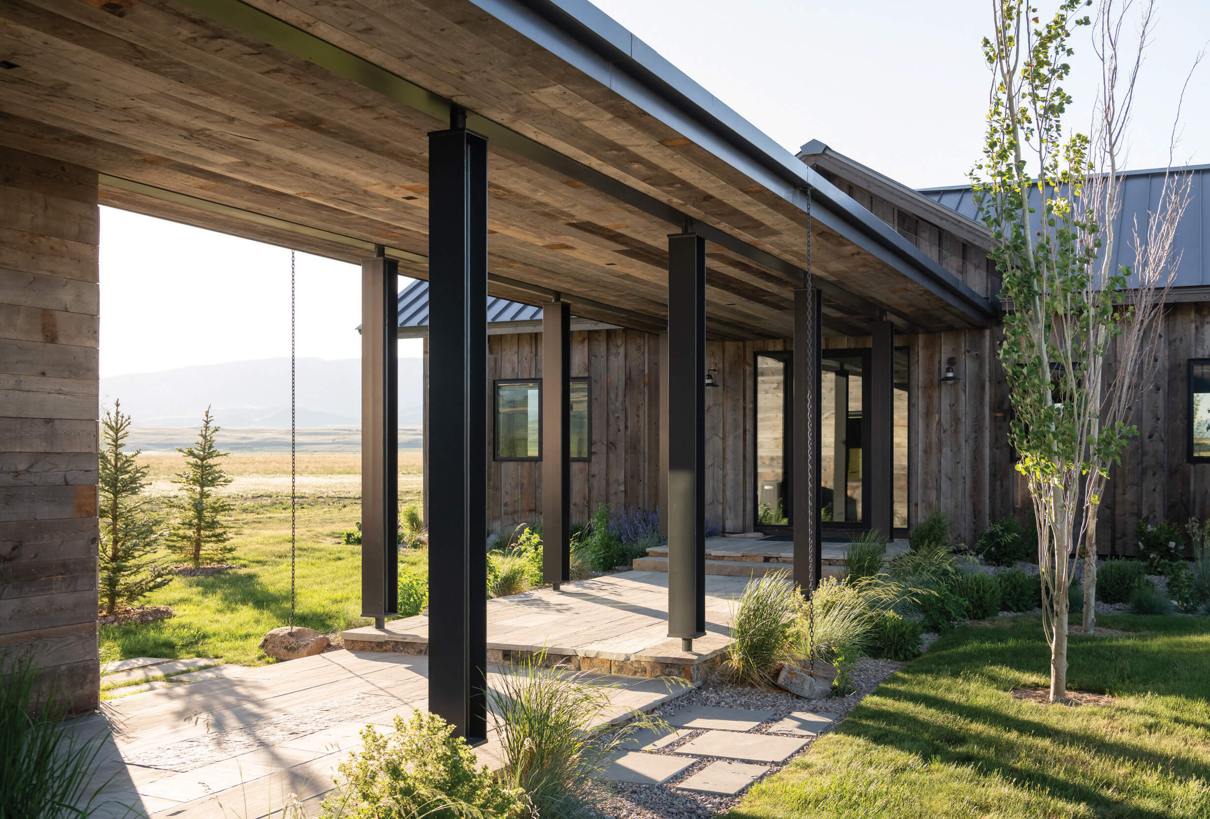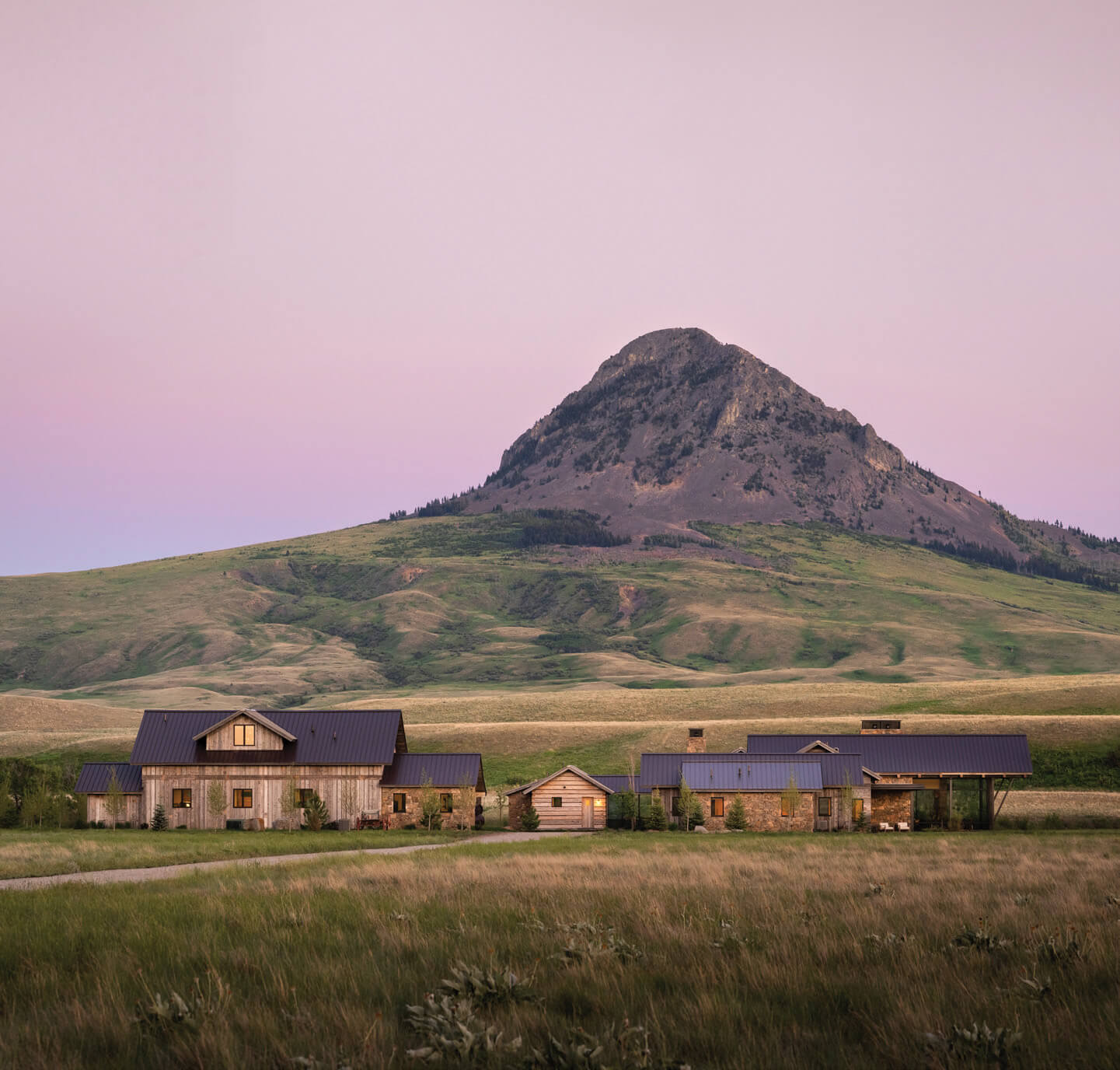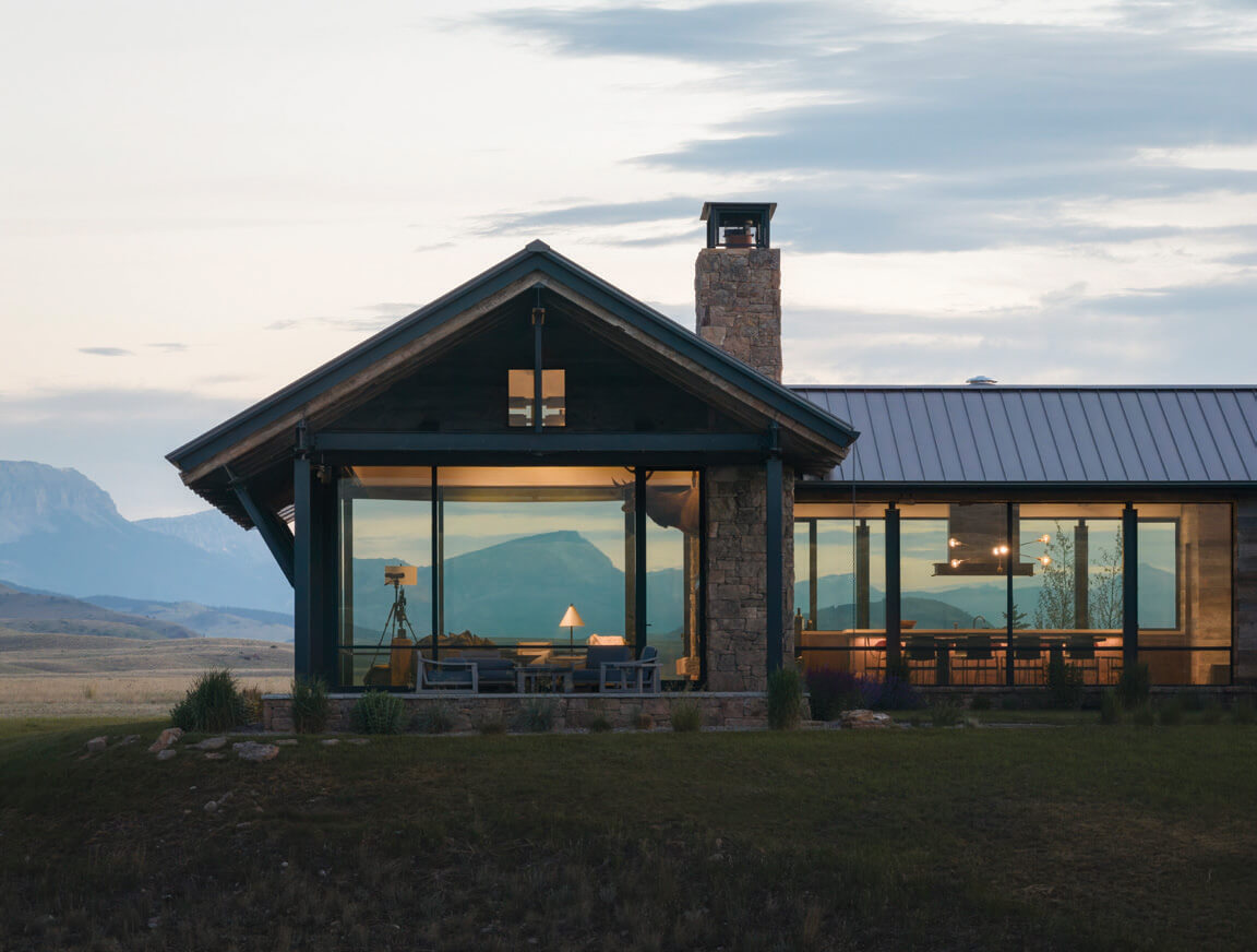Set amid the rolling grasslands of central Montana, a new family retreat looks completely at ease in the environs, perfectly positioned to embrace the drama of the surrounding landscape. The product of a well-choreographed vision, the home nods to homesteads built by American settlers who expanded westward in the 19th century, while embracing the cutting-edge use of steel, glazing, and well-appointed finishes meant to support a home built for living.