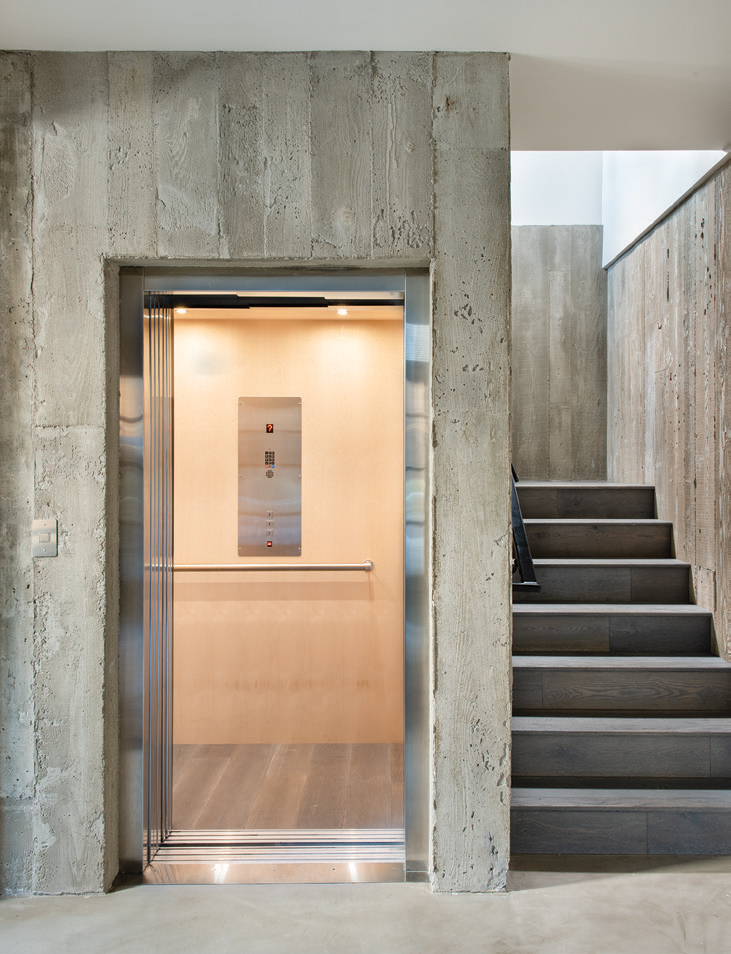 - An elevator allows for wheelchair accessibility and also served as the inspiration for the design team to place the main living spaces on the third floor.