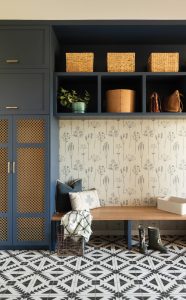 Easy-care handmade cement tiles from Cement Tile Shop cover the mudroom and laundry floor.
