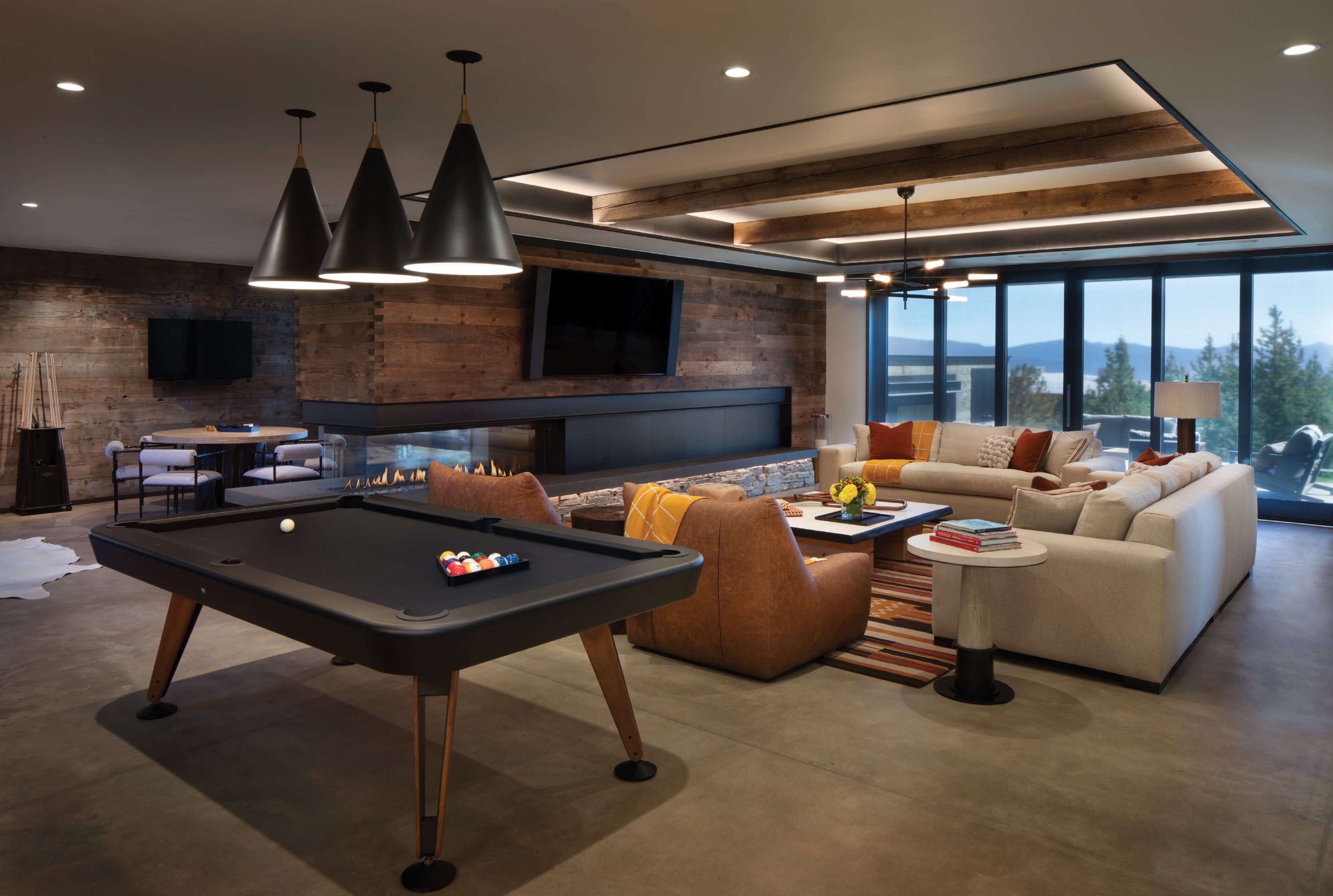 Recreation is a signature of the Rocky Mountain West, but why keep it all in the great outdoors? This comfortable den-like room is a friendly reminder that homes, sometimes the site of remote work, are also made for play.
