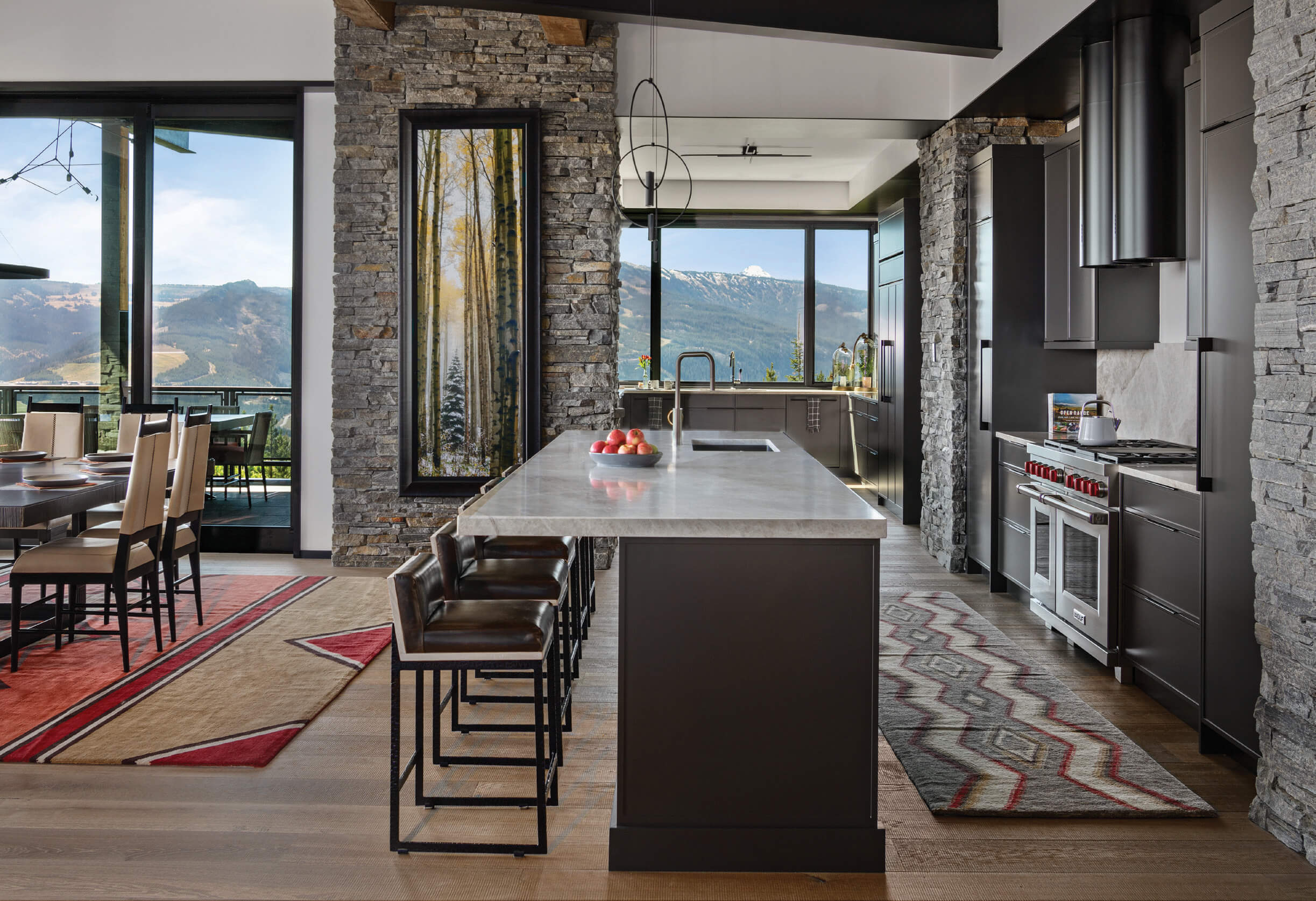 The sleek lines of contemporary design and materials are interwoven in a space that maximizes the human scale and minimizes the mountain scale to create what is sometimes termed “functional art.”
